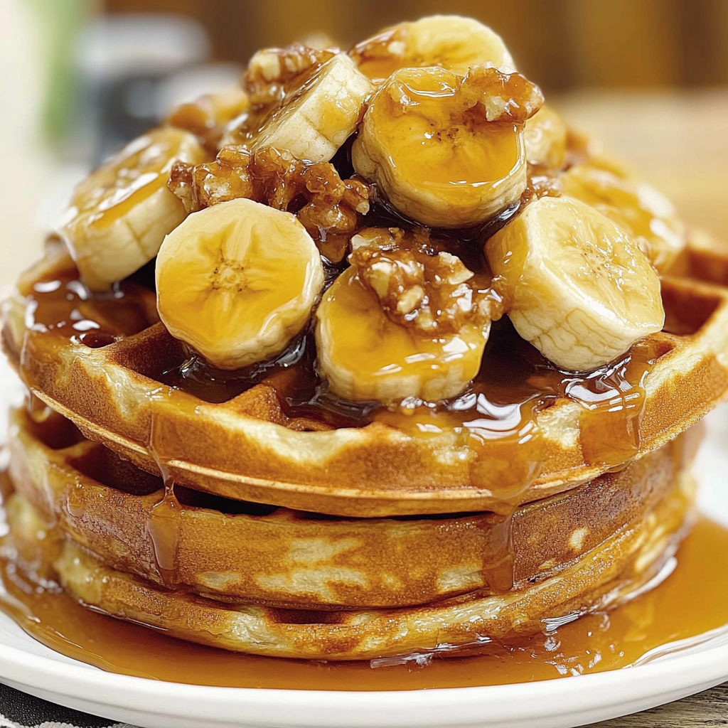 Delightful Banana Waffles with Caramel Topping Recipe