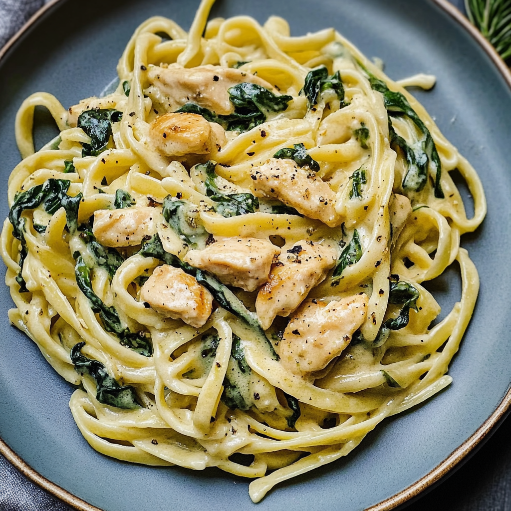 Creamy Greek Yogurt Chicken Pasta with Spinach Delight