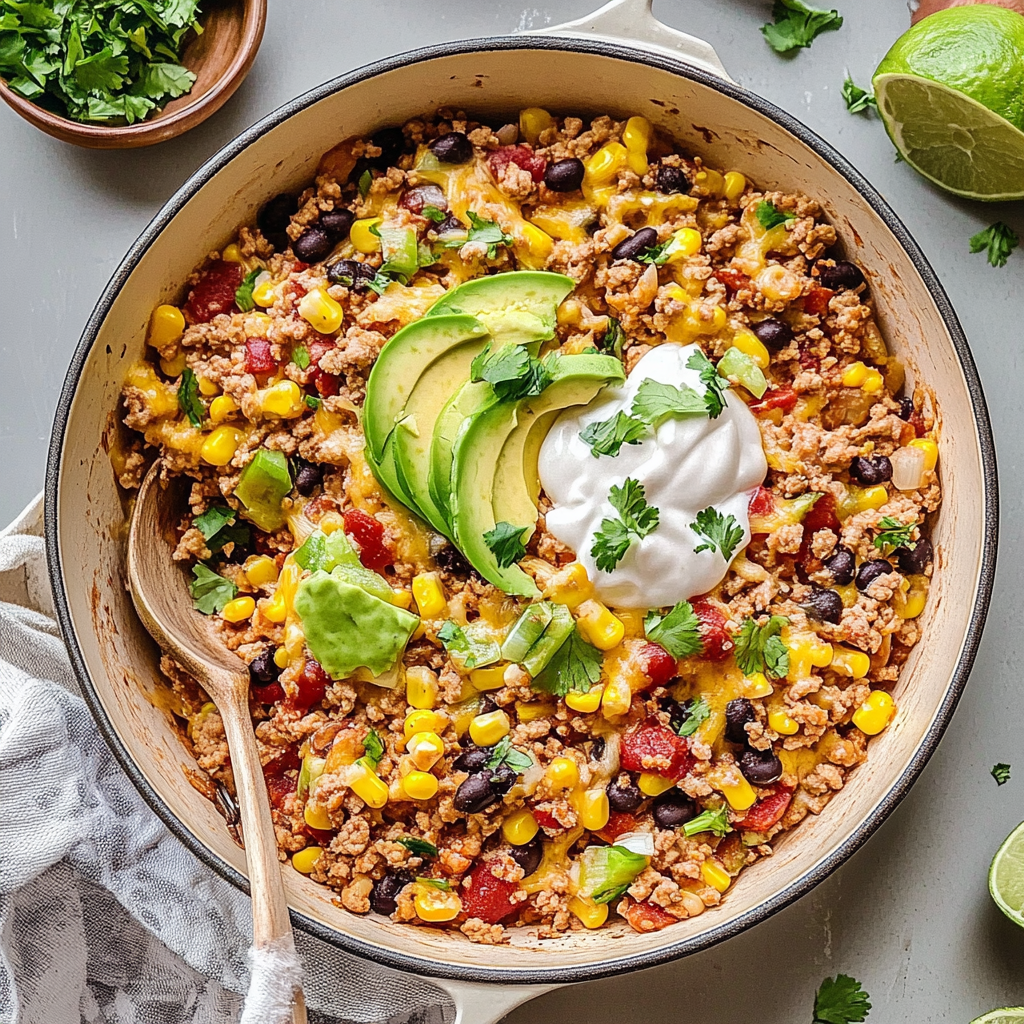 Delicious Ground Turkey Taco Skillet with Corn & Beans