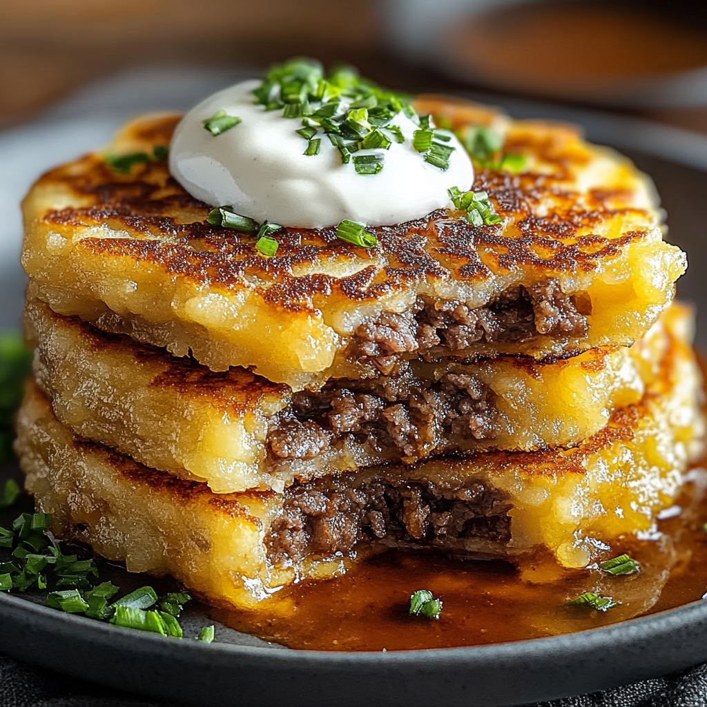 Crispy Potato Pancakes with Savory Beef Delight