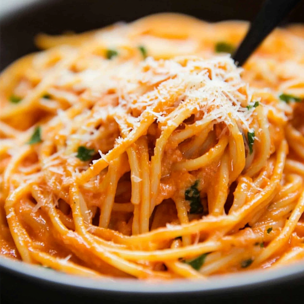 Irresistible Spaghetti with Creamy Roasted Bell Pepper Sauce
