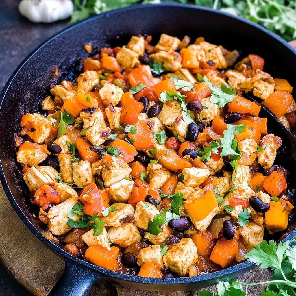 Flavorful Mexican Chicken, Sweet Potato & Black Bean Skillet