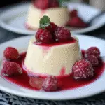 Once set, gently run a knife around the edges if you used molds. Invert onto plates or simply serve in glasses topped with fresh raspberries for that pop of color!