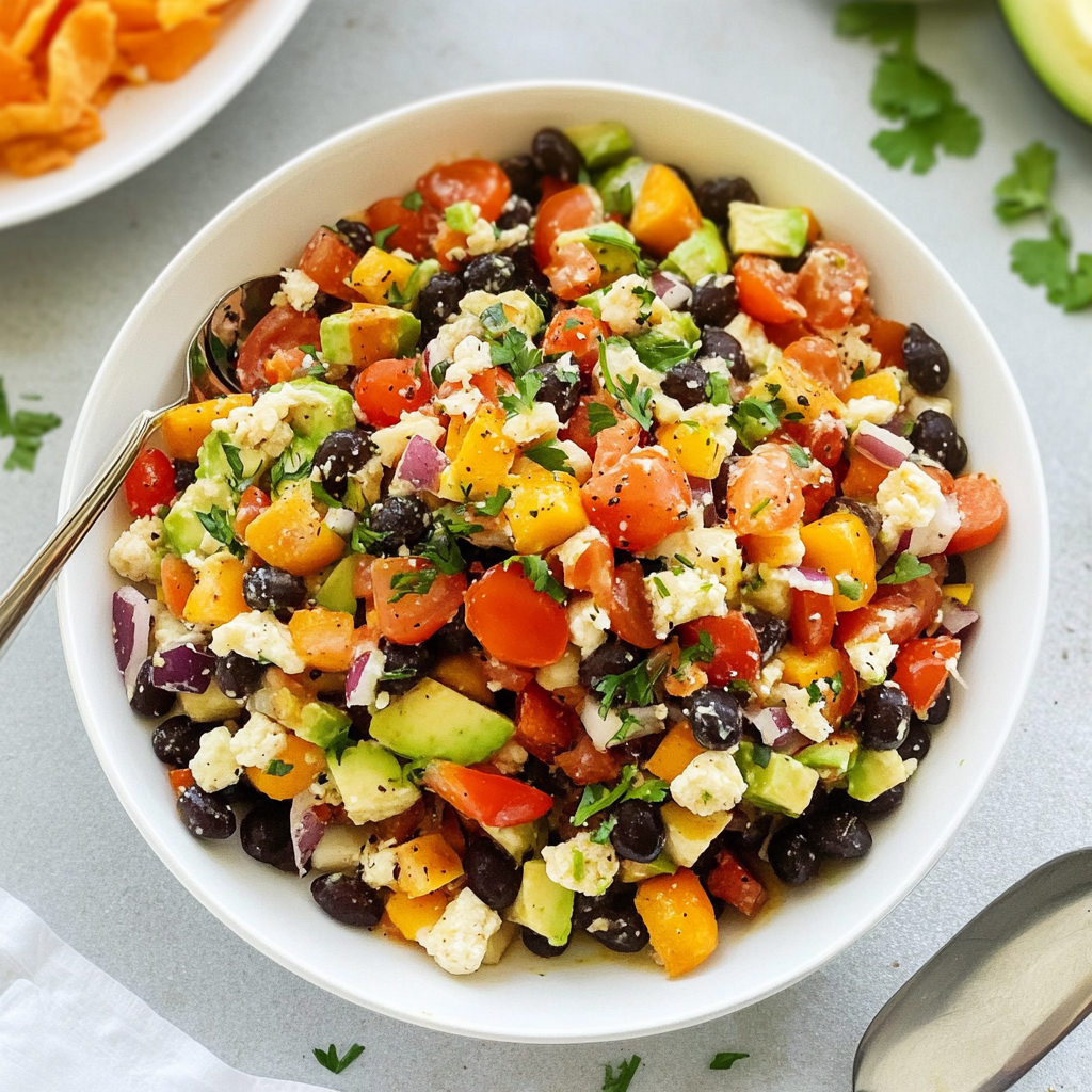 Add Fresh Ingredients: In a large mixing bowl, combine black beans, corn, diced veggies, chopped cilantro, and lime juice. Stir gently yet thoroughly for an even mix.