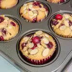 Add Cranberries and Almonds: Fold in the dried cranberries and sliced almonds gently. You want them evenly distributed without overmixing because nobody likes tough muffins!