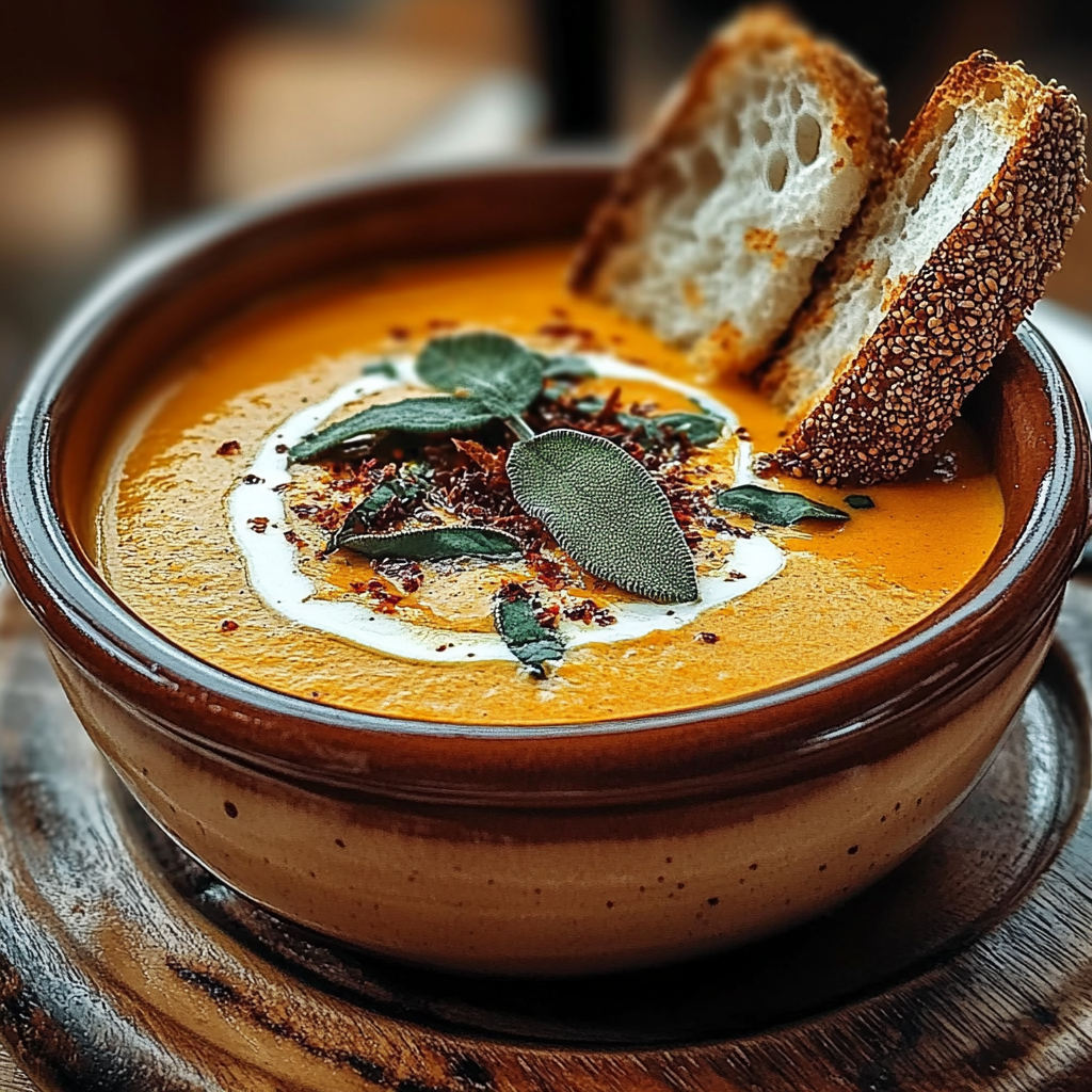 Delight Pumpkin Sage Bisque is a culinary hug in a bowl, warming you from the inside out. Imagine a creamy, velvety soup that dances on your palate with notes of sweet pumpkin and aromatic sage.