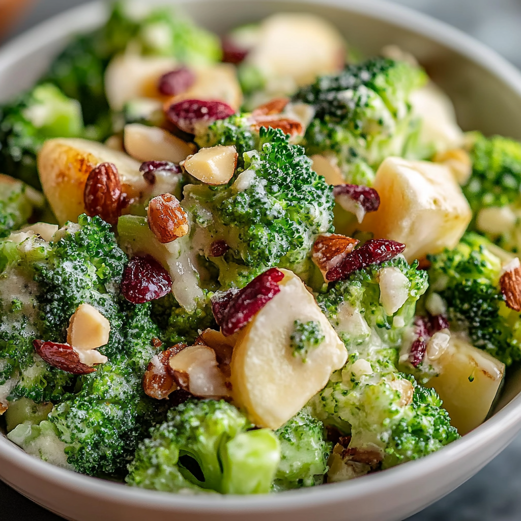 Start by preparing all ingredients first. Chop broccoli, slice apples, and mix the dressing. This sequence ensures everything is fresh and ready when you’re about to serve.