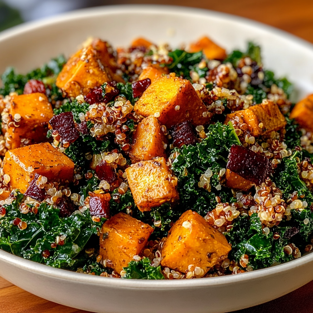 - Roasted Sweet Potato Kale and Quinoa Salad is a delightful combination that not only looks stunning but also packs a nutritional punch.