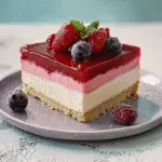 Create Layers: Divide your cream cheese filling into three equal parts in separate bowls. Fold fresh berries into each part—strawberries in one layer, blueberries in another, and raspberries in the last layer.