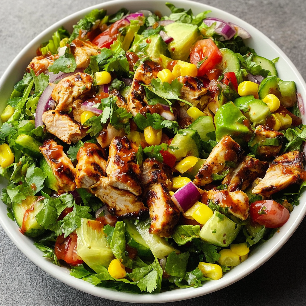 Keywords: For added flavor, marinate the chicken overnight in BBQ sauce. Substitute grilled shrimp or tofu for a different protein option. Keep dressing separate if making ahead to maintain freshness.
