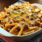 Cheeseburger French Fry Casserole is a crowd-pleasing comfort dish that combines the best of cheeseburgers and crispy fries in one delicious meal. With layers of seasoned ground beef, melted sharp cheddar cheese, and golden crinkle-cut fries, this casserole is perfect for busy weeknights or cozy gatherings. Quick to prepare and easy to customize with your favorite toppings, it’s a satisfying dish that will surely warm your heart and delight your taste buds.