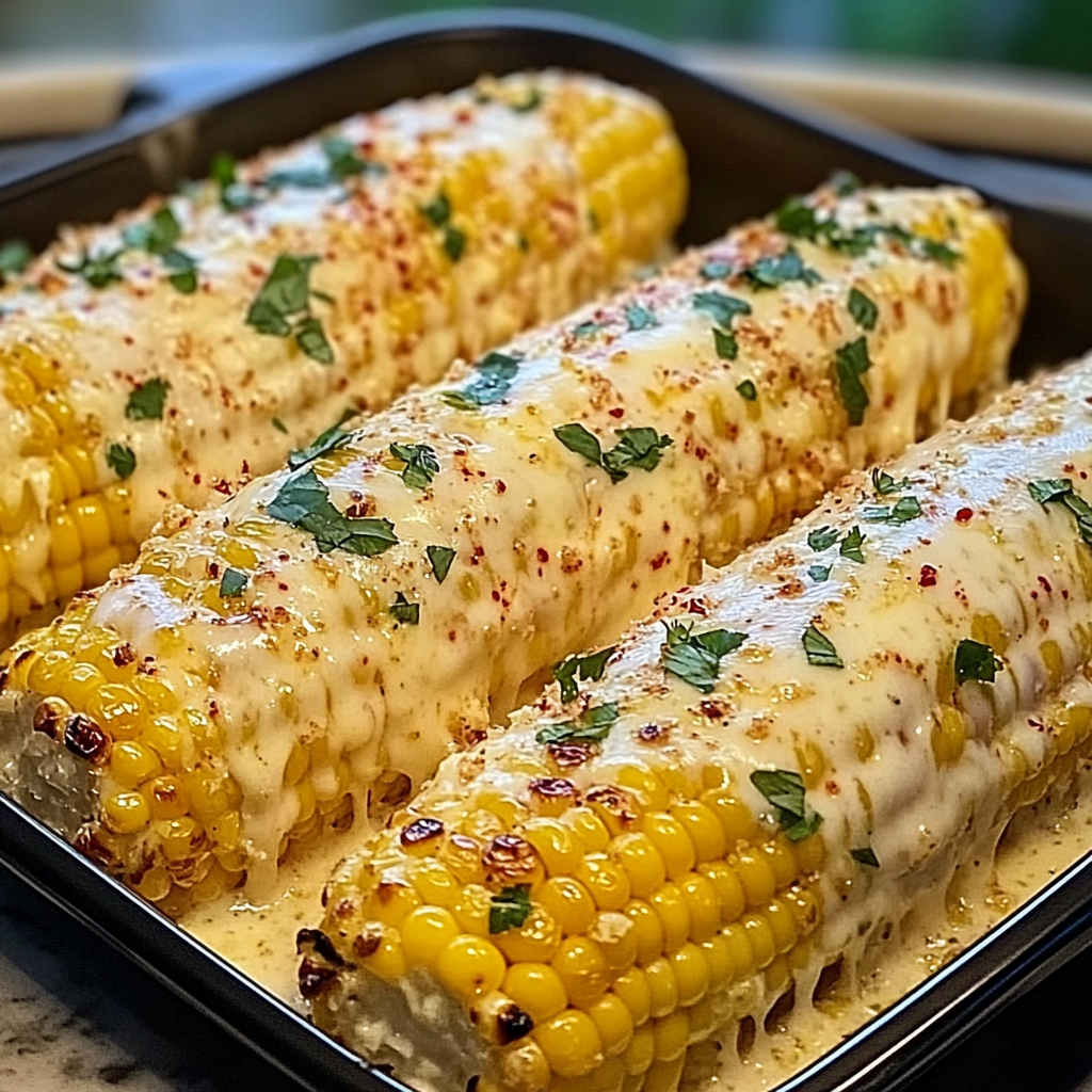 Keywords: Use fresh, seasonal corn for the best flavor. Experiment with different cheeses like cheddar for a unique twist. Soak corn in the butter mixture for 30 minutes for deeper flavor.