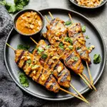 Chicken Satay is grilled skewered chicken served with creamy peanut sauce, bursting with flavor.