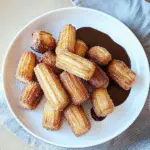 Serve warm: Arrange your churro bites on a plate with a small bowl of chocolate sauce for dipping. Enjoy while they’re warm—you won’t regret it!