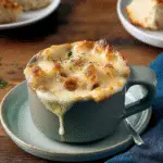 Serve hot, savor every gloppy bit of melted cheese gooeyness draping over those crunchy baguette slices! You’ve just created comfort food royalty right at home without needing to don any fancy chef’s hat.