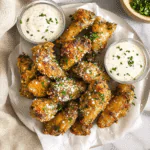 Enjoying these Garlic Parmesan Chicken Wings is like sitting at the intersection of flavor town and comfort food boulevard. They’re great for parties or just binge-watching your favorite show – because who needs utensils when you’ve got wings?