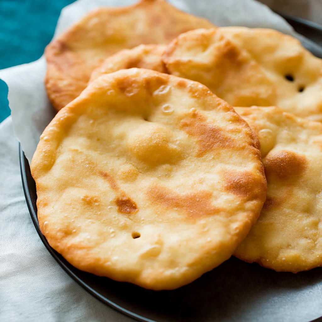 Shape and Fry Bread: Divide dough into equal portions, flatten each into rounds about ¼ inch thick. Carefully place them in hot oil one at a time, frying until golden brown on both sides (about 1-2 minutes each). Drain on paper towels before serving.