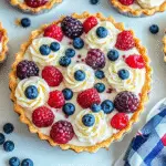 No-Bake 4th of July Fruit Tartlets are the perfect festive dessert for summer celebrations. With a buttery graham cracker crust, a smooth cream cheese filling, and topped with vibrant fresh berries, these tartlets are both visually stunning and deliciously refreshing. Quick to whip up, they allow you to enjoy more time with family and friends while impressing guests at your 4th of July barbecue or any gathering.