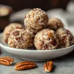 Keywords: Chill the balls for about 30 minutes after shaping to help them hold their form. For variations, try substituting pecans with walnuts or adding a pinch of cinnamon for extra flavor. Store leftovers in an airtight container in the fridge for up to one week.