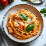 Cooking this one pot creamy tomato pasta always reminds me of family dinners filled with laughter and stories shared over bowls of warmth and comfort; it’s simply unforgettable!
