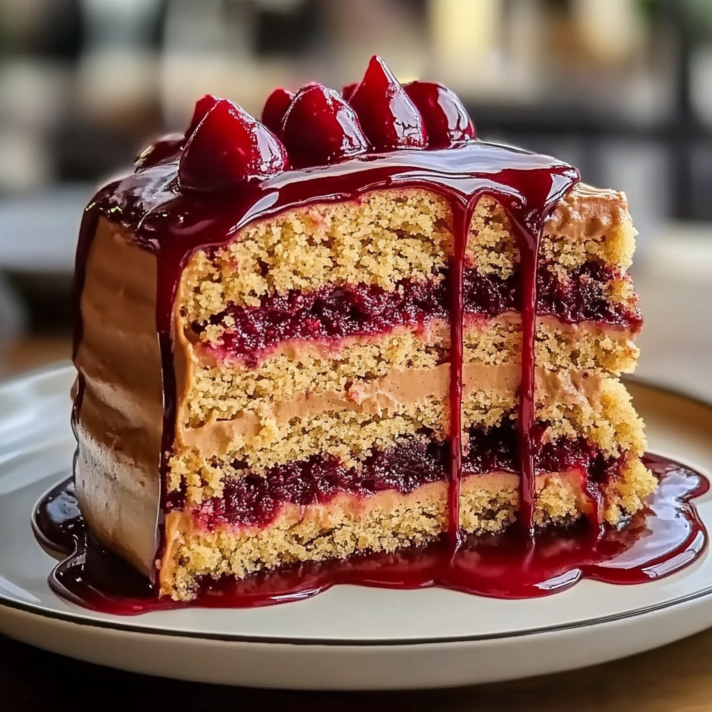 Peanut Butter & Jelly Cake is a delightful twist on a classic childhood favorite. Imagine the rich, nutty aroma of peanut butter wafting through your kitchen, mingling with the sweet scent of jelly as it bakes to golden perfection. You can almost taste the nostalgia in every bite.