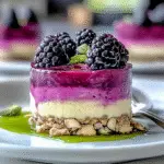 The moment you gaze upon these Pistachio & Blackberry Cheesecake Towers, your taste buds might just start doing a happy dance. Imagine creamy layers of cheesecake, silky smooth like a velvet dress at a gala, complemented by the nutty crunch of pistachios and the tangy pop of blackberries. Each bite promises a delightful explosion of flavors that will make your palate sing like it’s auditioning for “American Idol.”