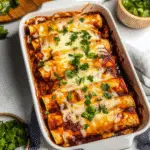 Add Sauce and Cheese: Place rolled enchiladas seam-side down in the baking dish. Pour remaining enchilada sauce generously over them, ensuring each one is smothered. Sprinkle shredded cheese atop all those saucy beauties!