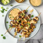 - Serve: Plate skewers with peanut sauce and enjoy!