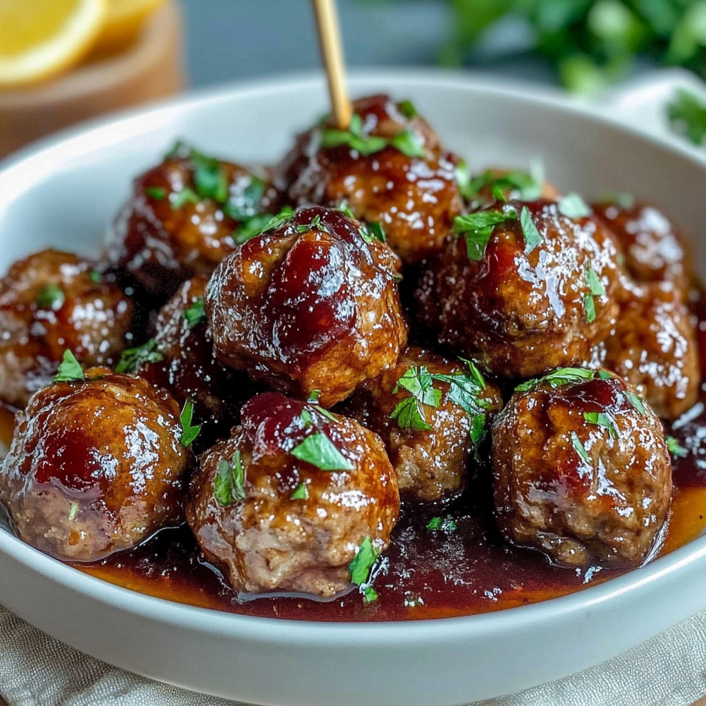 - Pour the glaze over the meatballs, ensuring they are well coated.
