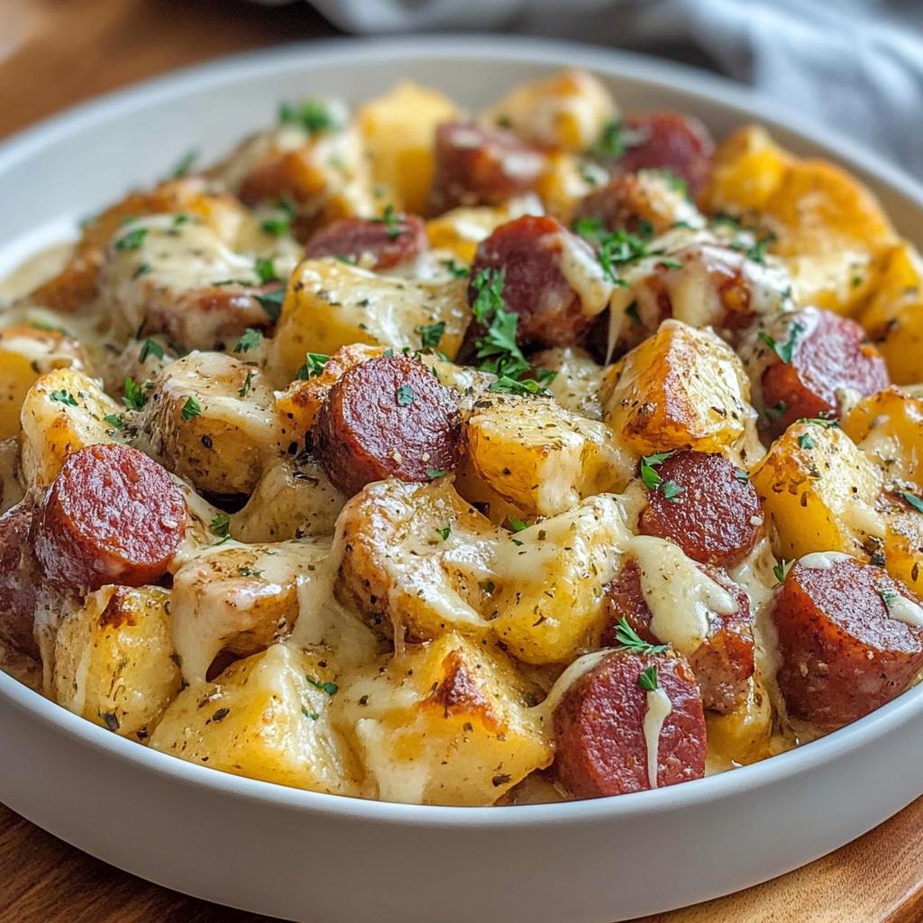 Smoky Kielbasa Cheesy Potatoes