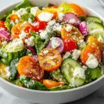 Indulge in the vibrant flavors of this Easy Classic House Salad, featuring crisp romaine lettuce, sweet cherry tomatoes, refreshing cucumbers, and a zesty dressing that brings everything together. In just 10 minutes, you can create a colorful dish that’s perfect for family gatherings or as a light meal on its own. This salad is not only quick to prepare but also a versatile base for your favorite toppings.