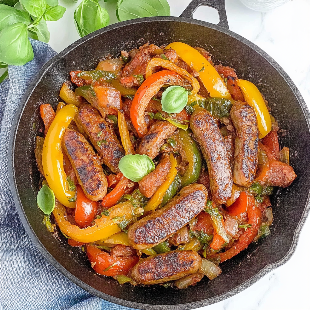 Keywords: For variations, substitute sausage with chicken or turkey, or use plant-based alternatives for a vegetarian option. Enhance flavor by adding balsamic vinegar or a sprinkle of cheese before serving. Store leftovers in an airtight container for up to three days; reheat in a skillet on medium heat.