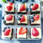 In summary, Strawberry and Blueberry Oreo Bars offer a deliciously sweet treat that’s perfect for any occasion. With their creamy filling, crunchy crust, and vibrant fruit toppings, they are sure to impress family and friends alike. Storing these bars is simple, ensuring they stay fresh for several days or even longer if frozen. Experimenting with different fruits can add variety to this delightful recipe. Enjoy making these tasty bars as a fun dessert that everyone will adore!