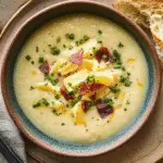 Tip: Don’t skimp on toppings; they elevate the soup’s flavor. Crispy bacon, cheese, and chives add wonderful crunch and zest.